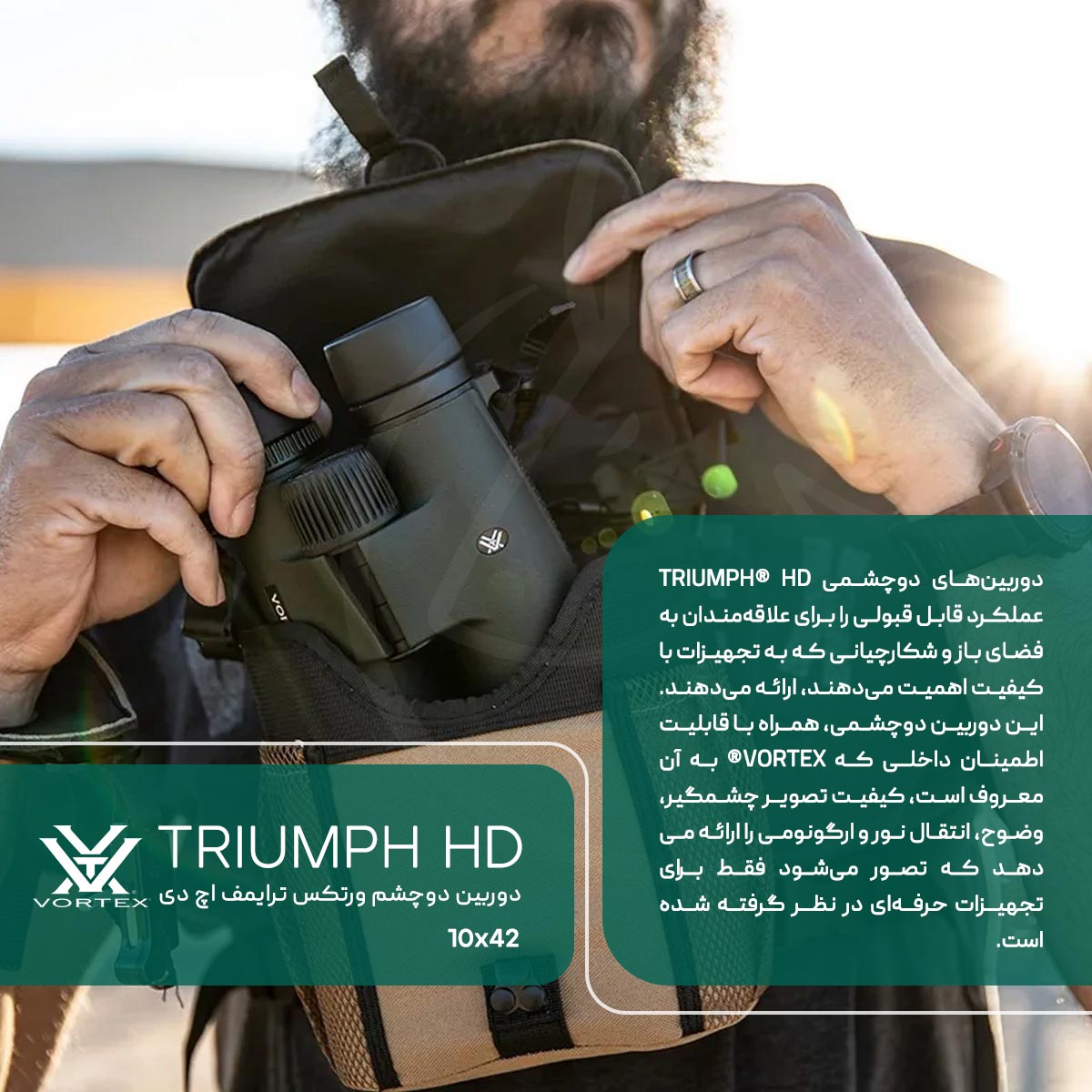 اگر به دنبال دوربینی هستید که بتواند در هر شرایطی، چه در کوهستانهای سخت یا در دل جنگلهای تاریک، تصاویری واضح و دقیق به شما ارائه دهد، Vortex Triumph HD 10x42 بهترین انتخاب است. این دوربین نه تنها کیفیت اپتیکی فوقالعادهای دارد، بلکه طراحی آن به گونهای است که استفاده از آن برای ساعات طولانی کاملاً راحت و بدون خستگی خواهد بود.