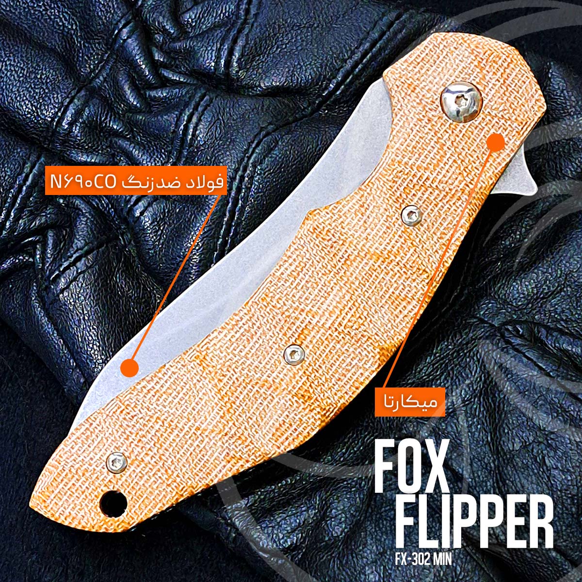 قلب تپنده کیفیت FOX FLIPPER FX-302 MIN، استفاده از متریالهایی است که در صنعت چاقوسازی، در بالاترین رده قرار دارند. جنس تیغه از فولاد ضدزنگ درجه یک N690Co بوهلر (Böhler) اتریش انتخاب شده است. این آلیاژ فولادی با درصد بالای کروم، کربن و کبالت، دقیقاً برای دستیابی به سه معیار حیاتی مهندسی شده است: