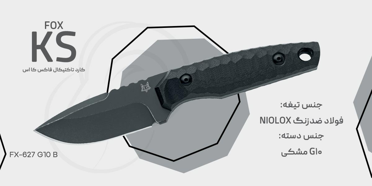 کارد FOX KS FX-627 G10 Black نمونهای از هماهنگی میان طراحی نظامی و دقت صنعتی ایتالیایی است. تیغهی Niolox با ضخامت ۵ میلیمتر، دستهی مقاوم از G10 مشکی و غلاف حرفهای Kydex در قالبی جمعوجور و کاربردی گرد آمدهاند تا ابزاری خلق شود که از دل تجربهای واقعی در میدان نبرد الهام گرفته است.