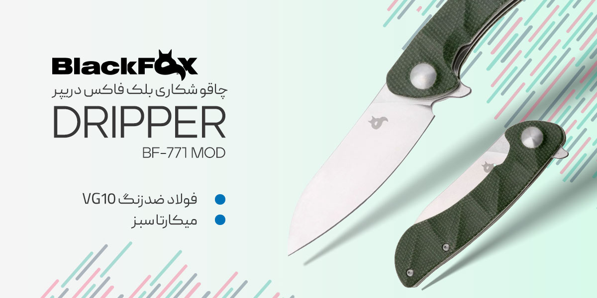 Black Fox Dripper BF-771 MOD نمونه‌ای از طراحی هوشمند و اجرای دقیق در ساخت چاقوهای روزمره است. ترکیب تیغه‌ی فولادی VG10، مکانیزم مطمئن Liner Lock، دسته‌ی میکارتای مقاوم و باز شدن سریع به‌وسیله‌ی Flipper، این مدل را به گزینه‌ای ایده‌آل برای کسانی تبدیل کرده که به یک چاقوی قابل اعتماد، بادوام و خوش‌دست برای استفاده‌ی روزانه نیاز دارند.