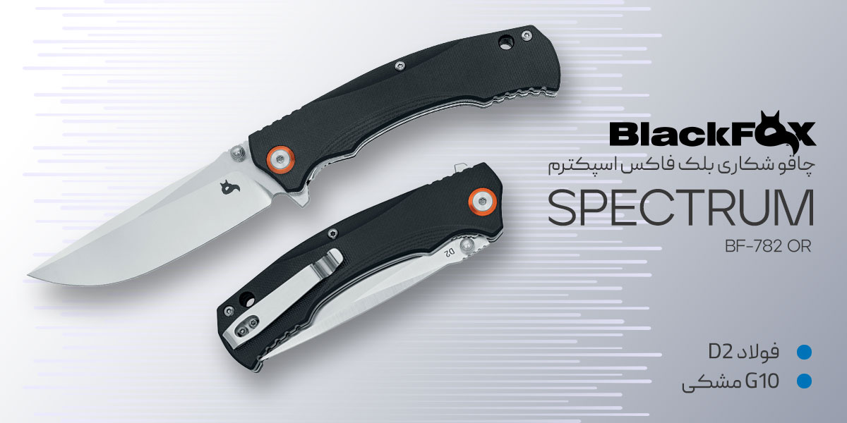 چاقوی تاشوی Black Fox Spectrum BF-782 OR از سری محصولات دقیق و خوشساخت برند ایتالیایی BlackFox است؛ برندی که سالها در زمینهی طراحی و ساخت ابزارهای برش و چاقوهای تاکتیکال و روزمره در سطح بینالمللی شناخته میشود. این مدل با ترکیب فولاد سخت، طراحی خوشدست و مکانیزم بازشوندهی روان، چاقویی است که هم برای استفادهی روزمره (EDC) و هم برای فعالیتهای فضای باز، همراهی قابل اعتماد به شمار میآید.