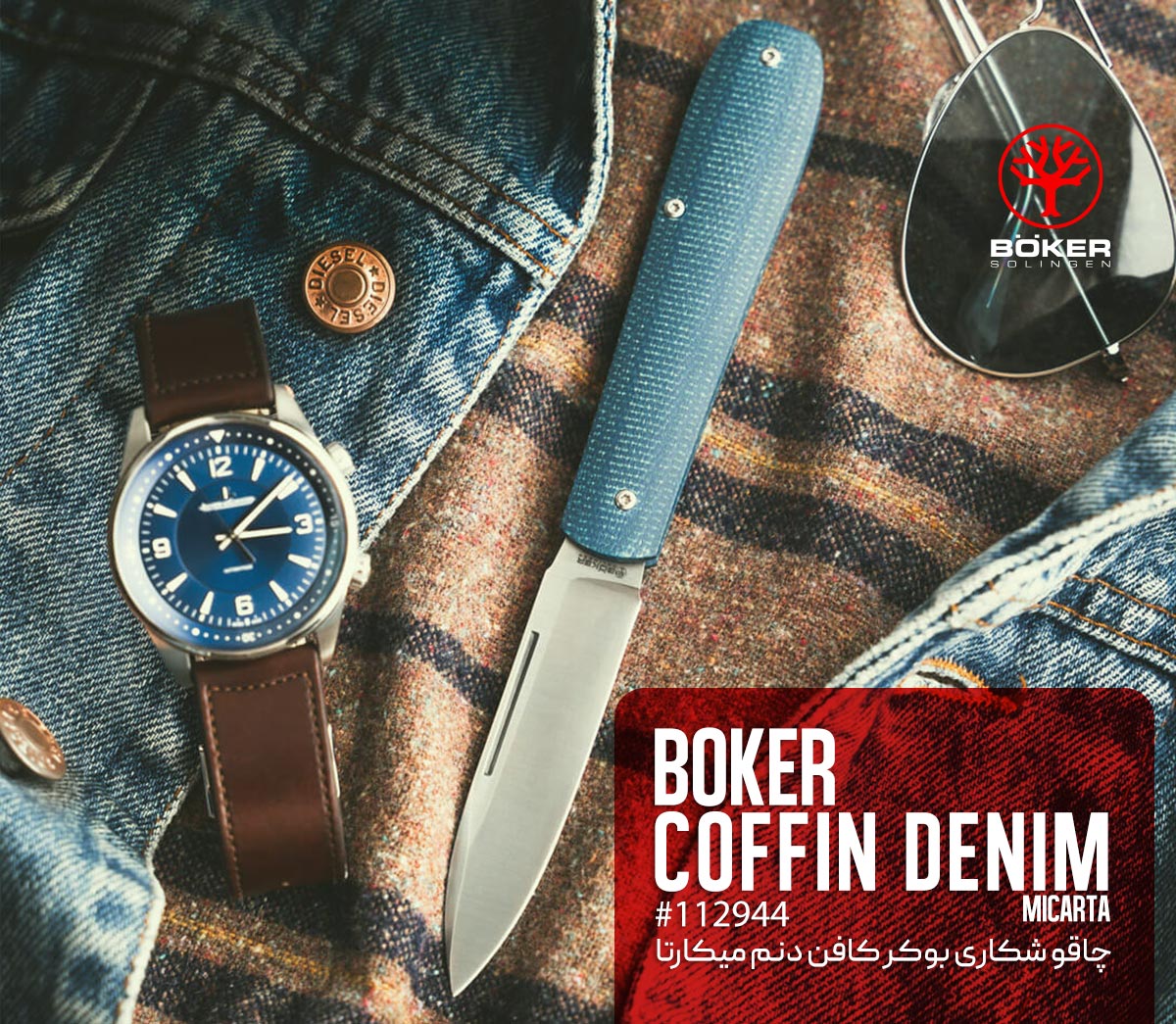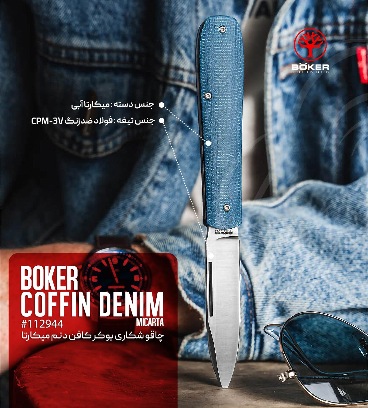 برند آلمانی بوکر (Böker) و خط تولید مدرن و خلاق آن، بوکر پلاس (Böker Plus)، همواره به دنبال ترکیب هنر چاقوسازی کلاسیک با متریالها و طرحهای امروزی هستند. چاقوی Böker Plus Coffin Denim Micarta با کد #112944 یک نمونه برجسته از این رویکرد است. این چاقو که با همکاری طراح مشهور، جاناتان کوک (Jonathan Koch)، که با نام "کوکنایفز" (Koch Tools) شناخته میشود، طراحی شده، نه تنها یک ابزار بُرنده است، بلکه یک اثر هنری قابل حمل است که جزئیات آن، داستانی از اصالت و نوستالژی را روایت میکند.
