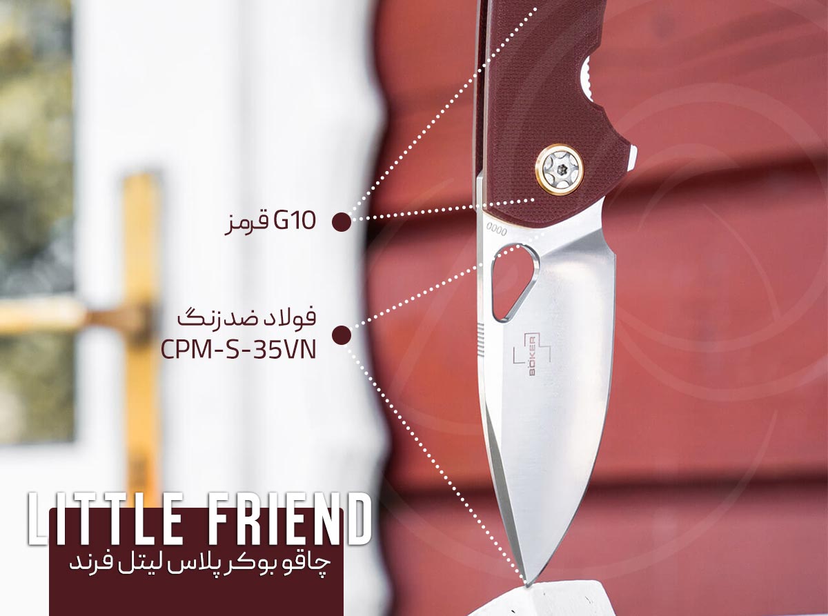 Boker Plus Little Friend با تمرکز بر استفاده از متریالهای ممتاز، فاصلهای معنادار با چاقوهای مینیاتوری معمولی ایجاد کرده است. الهام اصلی آن، ایجاد ابزاری بود که ضمن رعایت محدودیتهای ابعادی، سطح عملکردی در حد چاقوهای بزرگ و گرانقیمت داشته باشد. این چاقو به ویژه برای کاربران حرفهای که به یک تیغه کوچک برای کارهای تخصصی نیاز دارند، و در عین حال کیفیت فولاد نباید فدا شود، یک ابزار بینقص است.