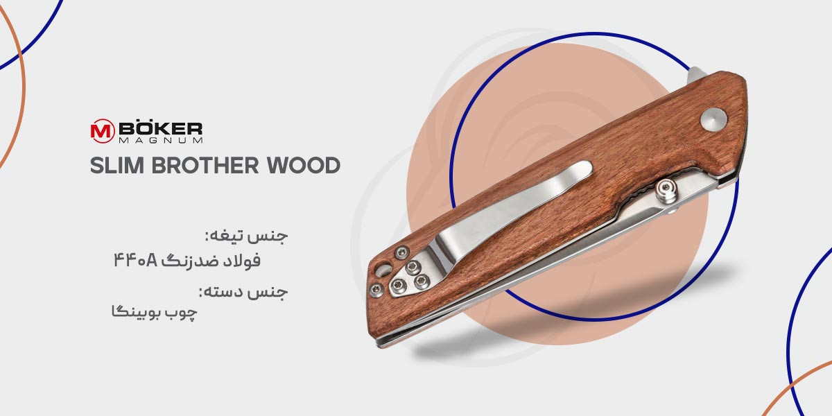 در دنیای چاقوهای حمل روزمره (EDC)، گاهی اوقات بهترین ابزار، آن است که حضورش تقریباً احساس نشود، اما هنگام نیاز، با کارایی خود بدرخشد. چاقوی Böker Magnum Slim Brother Wood مدل 01MB723، با نامی که بر "باریکی" (Slim) و "همراهی" (Brother) تأکید دارد، دقیقاً برای این منظور طراحی شده است. این چاقو با محوریت سبکی، ضخامت کم و زیبایی کلاسیک چوب طبیعی، یک انتخاب عالی برای کاربرانی است که به دنبال یک ابزار شیک، نامحسوس و کاربردی برای محیطهای شهری و رسمی هستند. فلسفهی ساخت آن بر ترکیب ظرافت یک ابزار رسمی (Gentleman's Folder) با عملکرد یک EDC قابل اعتماد استوار است.
