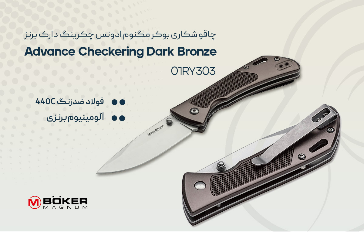 در میان چاقوهای حمل روزمره (EDC)، برخی مدل‌ها با الهام از زیبایی‌شناسی کلاسیک، اما با استفاده از متریال‌ها و مکانیزم‌های مدرن، جایگاه ویژه‌ای پیدا می‌کنند. چاقوی Böker Magnum Advance Checkering Dark Bronze مدل 01RY303 نمونه‌ای برجسته از این تلاقی است. این چاقو با ظاهری که یادآور تجهیزات باکیفیت و با اصالت دهه گذشته است، اما با عملکرد یک ابزار امروزی، طراحی شده تا همراهی قابل اعتماد، چشم‌نواز و چندمنظوره برای کاربر روزمره باشد. فلسفه‌ی ساخت این مدل، بر ترکیب استحکام و سبکی، همراه با جزئیات بصری مانند بافت‌دهی شطرنجی (Checkering) و رنگ برنز تیره (Dark Bronze) استوار است.