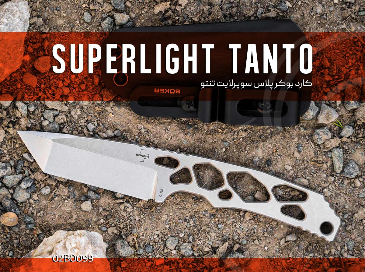 در دنیای ابزارهای بُرنده، معمولاً یک قانون نانوشته وجود دارد: استحکام بیشتر برابر است با وزن بیشتر. با این حال، چاقوی Boker Plus Superlight Tanto با کد 02BO099 آمده است تا این معادله را به چالش بکشد. این چاقو یک ابزار تیغه ثابت (Fixed Blade) است که بهطور خاص برای حمل روزانه سبک یا استفاده در موقعیتهایی طراحی شده که هر گرم وزن اهمیت دارد. Superlight Tanto، قدرت ساختار یک چاقوی ثابت را با فلسفهٔ حداقلگرایی (Minimalism) ترکیب کرده و نتیجه آن یک ابزار تاکتیکی کارآمد و فوقالعاده سبک است.