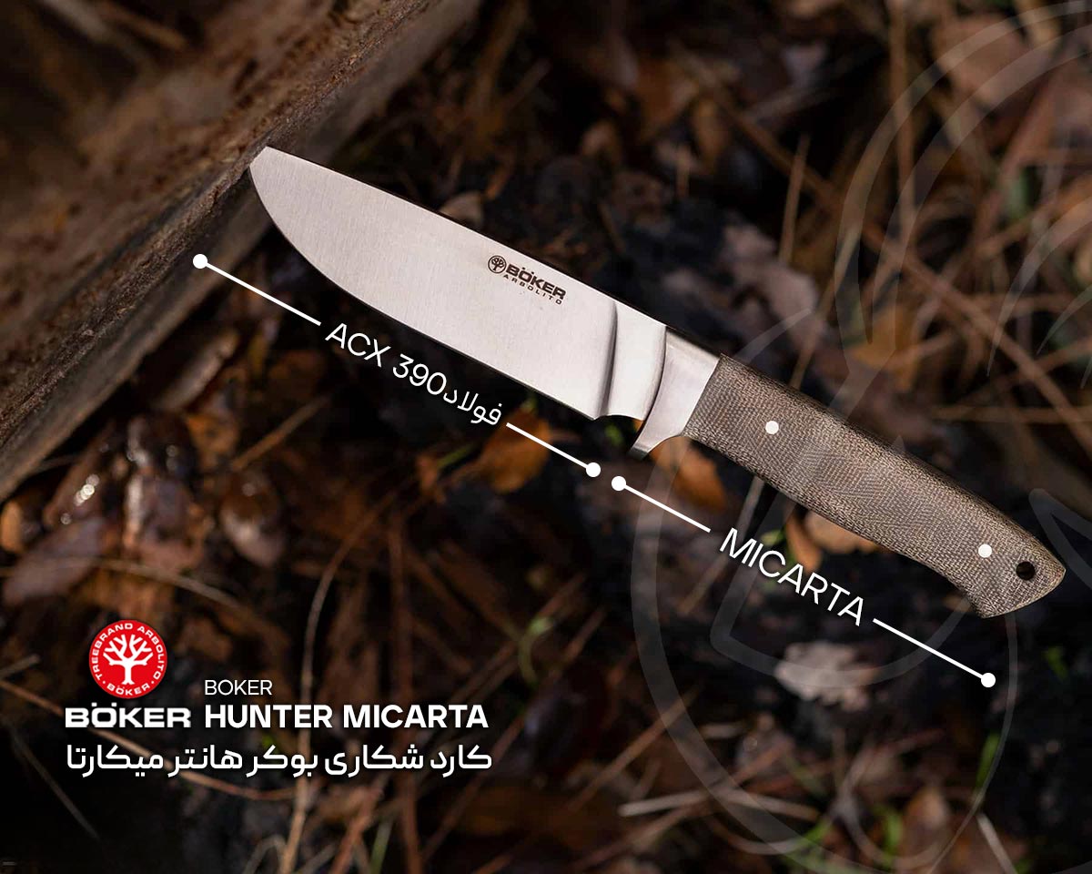 وقتی صحبت از یک کارد مخصوص طبیعت گردی و بوشکرفت قابل اعتماد و با دوام می شود، کارد بوکر مدل Hunter Micarta در میان طبیعت گردان از محبوبیت خاصی برخوردار است. این کارد بوکر، تولید لاین آرژانتینی بوکر یعنی Boker Arbolito می باشد.