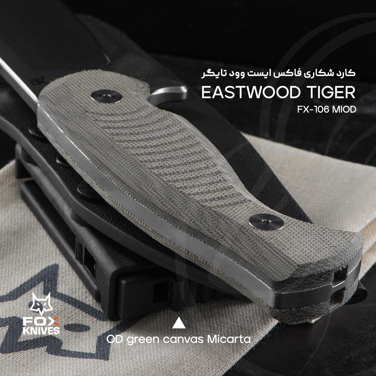 کارد Eastwood Tiger FX-106 MIOD از کمپانی ایتالیایی FOX، یک کارد مخصوص طبیعت و با طراحی Full Tang (اسکلت یک تکه) است که توسط چاقو ساز خلاق هلندی Gudy van Poppel طراحی شده است. این چاقو ساز از سال 1990 تا به امروز، به دلیل طراحی چاقو های تاکتیکال با کیفیت و همچنین ترکیب اِلمان های کلاسیک با ویژگی های مدرن در طراحی های خود، در آمریکا و اروپا طرفداران بسیاری دارد. تبحر خاص Gudy van Poppel در ساخت کارد های بوشکرفت، باعث شده است که کمپانی FOX طراحی کارد مخصوص شکار Eastwood Tiger FX-106 MIOD را به این چاقوساز بسپارد.