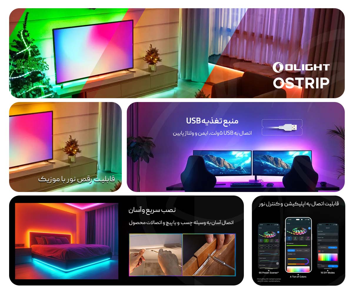 تنظیم رنگها و نور: ریسه نوری Olight Ostrip قابلیت تنظیم رنگهای متنوع و شدت نور را به شما میدهد. شما میتوانید نور را به دلخواه خود برای ایجاد فضایی دلپذیر و مناسب برای هر فعالیتی تنظیم کنید.