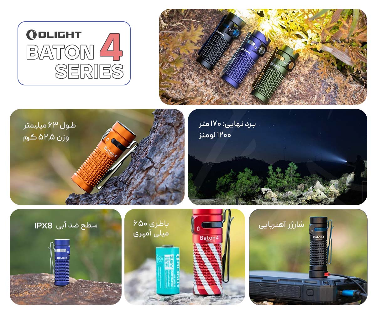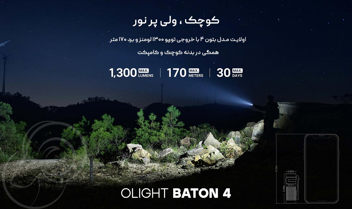اولایت همیشه در بهینه‌سازی محصولاتش تمام جوانب را با دقت بررسی می‌کند و یکی از مهم‌ترین بخش‌ها، عملکرد و ساختار کلی محصول است. در مدل Baton 4، حداکثر خروجی نور به ۱۳۰۰ لومن افزایش یافته است که در حالت توربو، نوری بسیار قوی، یکنواخت و همگن تولید می‌کند. این نور از لنزهای حرارت دیده و فوق شفاف TIR عبور می‌کند و توانایی پرتاب نور با شدت ۷۲۲۵ شمع را تا فاصله‌ای حدود ۱۳۵ متر دارد، که باعث می‌شود در تاریکی حتی دورترین نقاط هم به وضوح قابل مشاهده باشند.