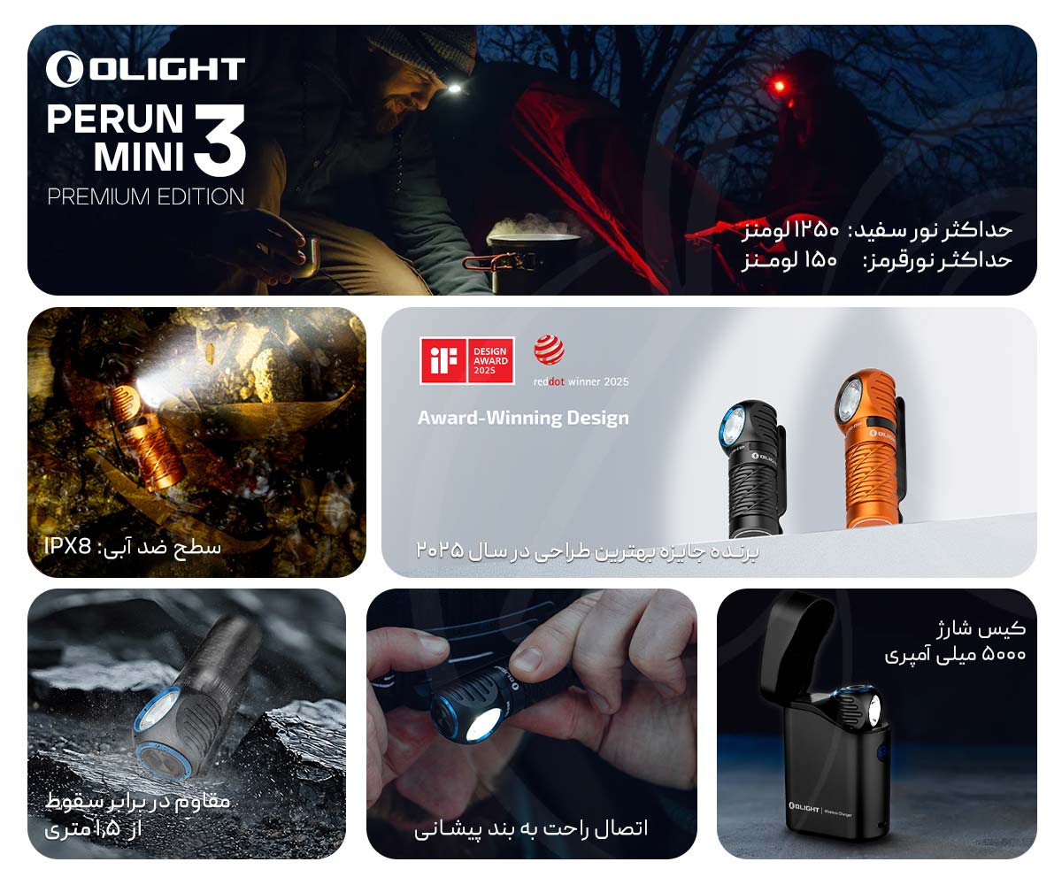Olight Perun 3 Mini Premium Edition Orange یک چراغ قوه کوچک، سبک و در عین حال قدرتمند است که قابلیتهای متنوع نوردهی، باتری قابل شارژ همراه و طراحی مقاوم را ارائه میدهد. این چراغ مناسب برای استفاده روزمره، سفر، فعالیتهای حرفهای و شرایط اضطراری میباشد و انتخابی مطمئن برای کسانی است که به دنبال کیفیت و عملکرد بالا هستند.