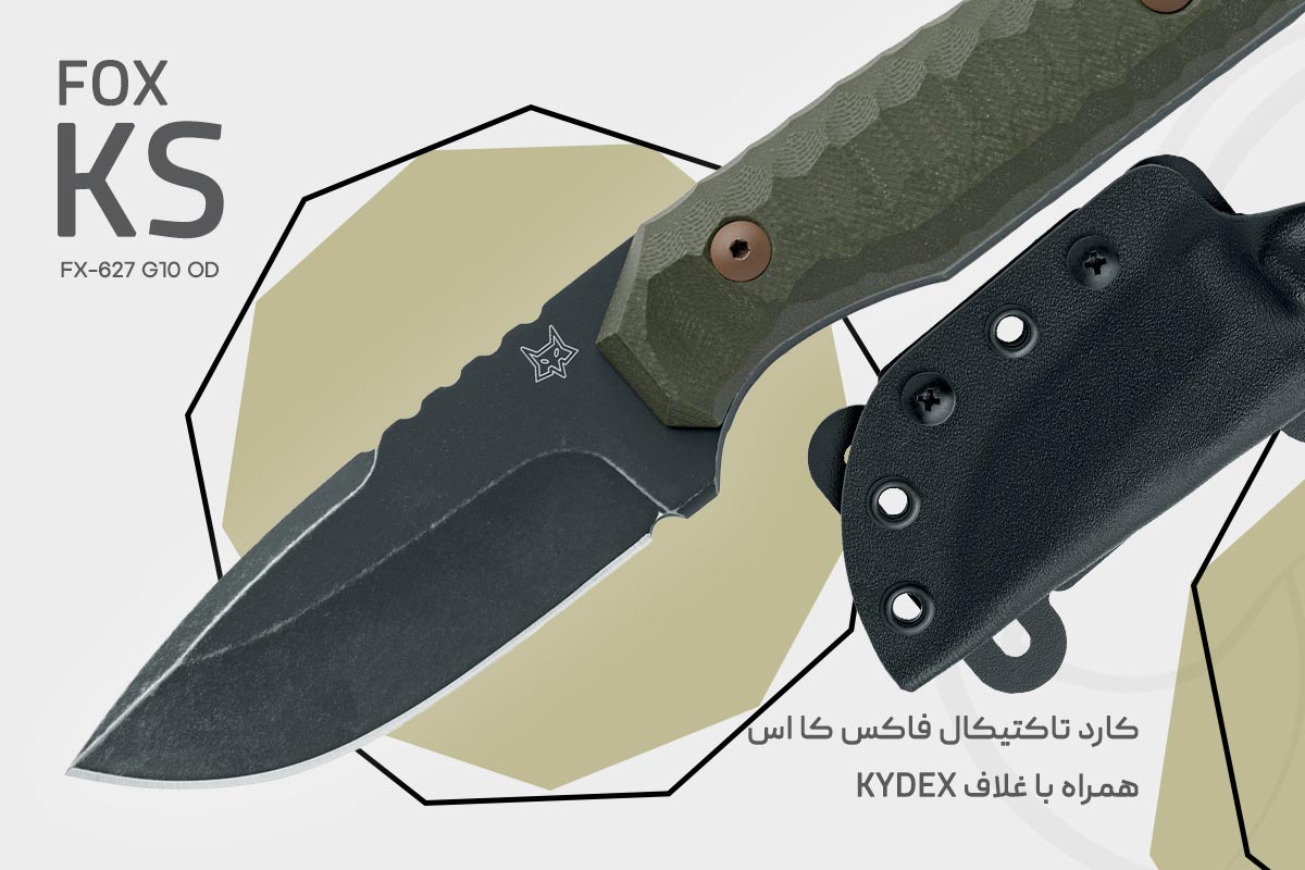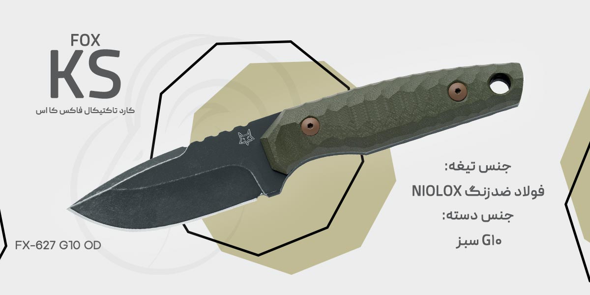 کارد FOX KS FX-627 G10 OD نمایانگر پیوندی میان تجربهی میدانی و دقت مهندسی است. تیغهی فولاد Niolox با ضخامت ۵ میلیمتر، دستهی مقاوم G10، و غلاف حرفهای Kydex، همگی در قالبی جمعوجور و کاربردی گرد آمدهاند تا نتیجهی تفکری باشند که در دل یکی از سختترین دورههای نظامی جهان شکل گرفت.