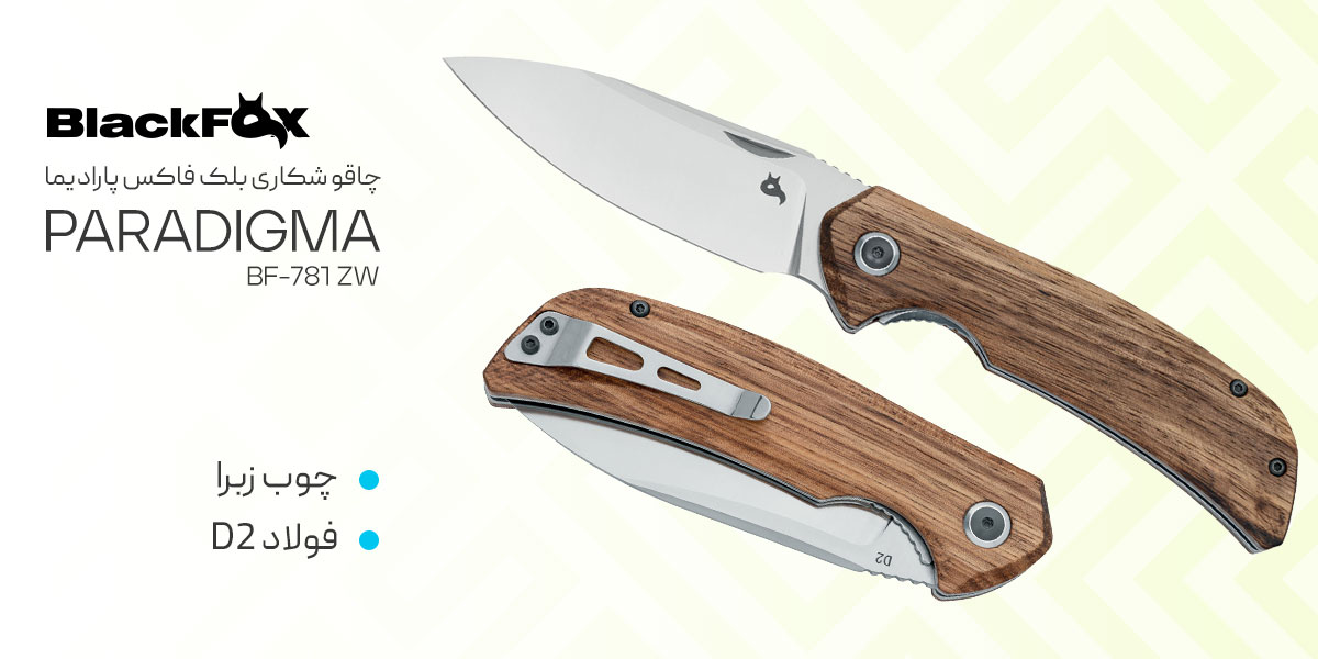 چاقوی تاشوی BLACK FOX PARADIGMA مدل BF-781 ZW، با تکیه بر تجربه شرکت معروف Fox ، یک ترکیب عالی از کارایی، زیبایی و ارزش اقتصادی است. استفاده از فولاد D2 برای پایداری لبه و چوب زبرا برای یک دسته خاص و جذاب، آن را از رقبای همرده خود متمایز میکند. اگر به دنبال یک چاقوی EDC قابل اعتماد، زیبا، و با اصالت ایتالیایی هستید که نشاندهنده سلیقه خوب شما در انتخاب ابزار باشد، BF-781 ZW بهترین گزینه برای شماست. پارادایمای خود را انتخاب کنید و سطح جدیدی از لذت بردن از ابزار روزانه را تجربه نمایید.