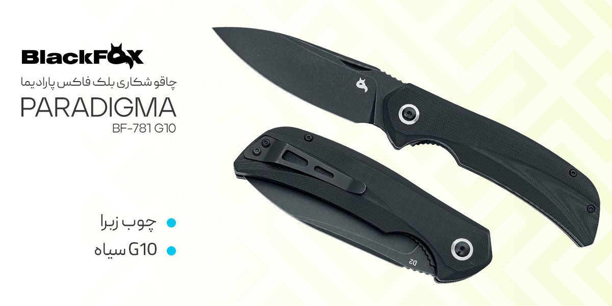 چاقوی تاشوی BLACK FOX PARADIGMA مدل BF-781 G10، با تکیه بر تجربه شرکت معروف Fox، یک ترکیب عالی از کارایی عملیاتی، دوام بینظیر و ارزش اقتصادی است. استفاده از فولاد D2 با پوشش محافظ مشکی برای پایداری لبه و کامپوزیت G10 برای یک دسته مقاوم در برابر هر شرایطی، آن را از رقبای همرده خود متمایز میکند. اگر به دنبال یک چاقوی EDC قابل اعتماد، تاکتیکی، و با دوام صنعتی هستید که نشاندهنده سلیقه خوب شما در انتخاب ابزار باشد، BF-781 G10 بهترین گزینه برای شماست. پارادایمای خود را انتخاب کنید و سطح جدیدی از لذت بردن از ابزار روزانه را تجربه نمایید.میباشد.