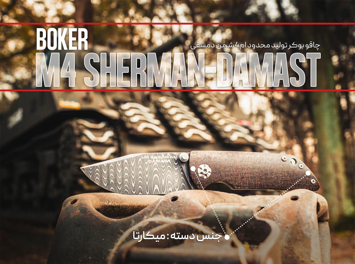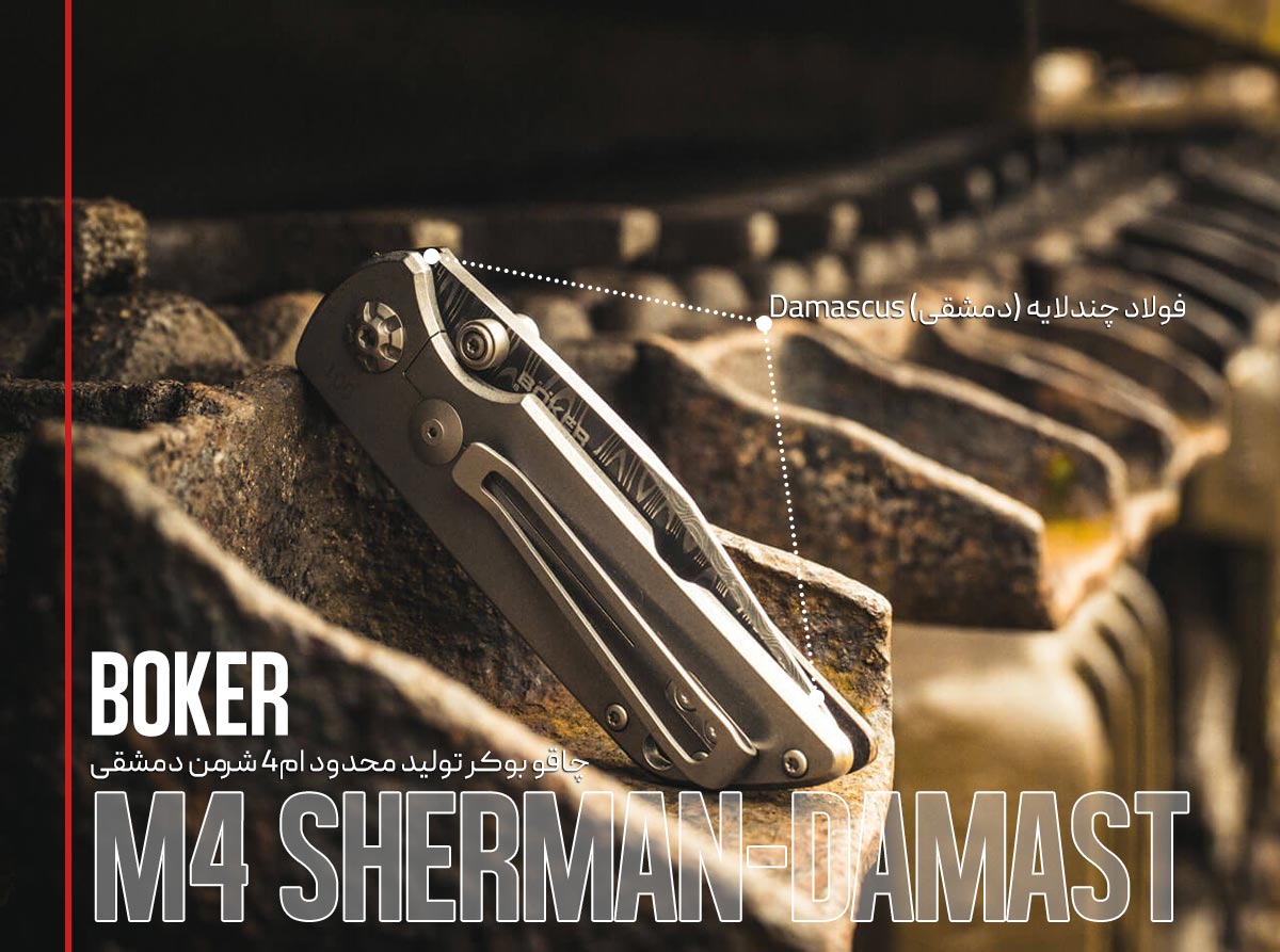 برخی از ابزارهای کلکسیونی نه تنها به دلیل کیفیت ساخت و زیبایی بصری خود مورد توجه قرار می‌گیرند، بلکه حامل یک داستان تاریخی عمیق هستند. چاقوی BÖKER M4 Sherman-Damast با شماره مدل #110662DAM، یک نمونه‌ی بارز از این میراث‌سازی است. این محصول، ادای احترامی باشکوه به تانک نمادین M4 Sherman است؛ یکی از تأثیرگذارترین وسایل نقلیه‌ی زرهی در تاریخ جنگ‌های مدرن. بؤکر با استفاده‌ی ماهرانه از فلزات با ریشه‌ی تاریخی، توانسته است روح استقامت و مهندسی این تانک افسانه‌ای را در قالب یک چاقوی جیبی لوکس و نفیس به مجموعه‌داران منتقل کند. این مقاله به بررسی این شاهکار هنری می‌پردازد و جزئیات طراحی، متریال‌های استثنایی و ارزش کلکسیونی آن را روشن می‌سازد.