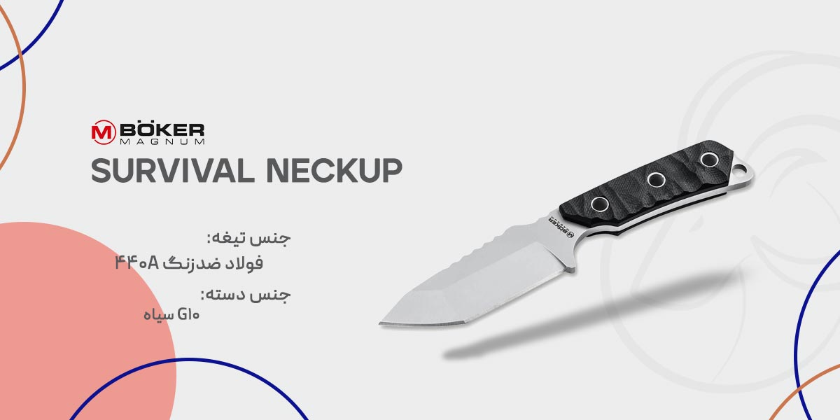 مگنوم از شرکت بوکر آلمان، با طراحی Survival Neckup، به نیاز کاربرانی پاسخ داده است که به یک تیغه ثابت سبک، همیشه در دسترس و بدون حجم اضافه نیاز دارند. این طراحی الهام گرفته از چاقوهای نظامی و بقاء است که تأکید بر دسترسی سریع به یک لبه برنده به عنوان آخرین خط دفاعی یا ابزار تکمیل‌کننده دارد.