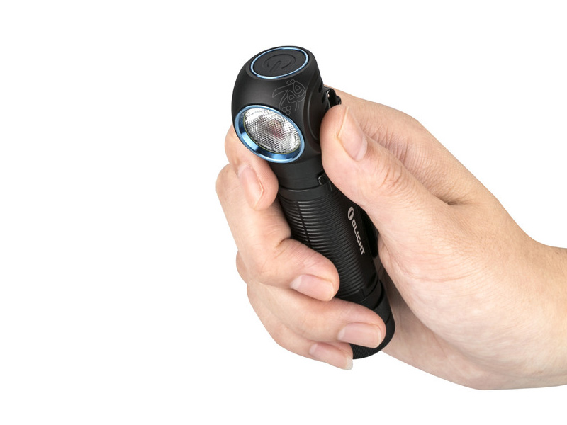 اتصال آهن ربایی چراغ قوه Olight H2R NOVA به بند سر به شما این امکان را می دهد که به راحتی با کمک یک دست چراغ قوه را باز و بسته کنید و تا 90 درجه زاویه استفاده و قرار گرفتن چراغ قوه را تغییر دهید .